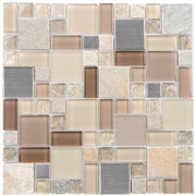 Earth Cubes Stainless 12”x12” Glossy Glass/Metal/Stone Slate Multi-shaped Mosaic Wall Tile