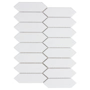Introduce subtle texture and classic charm to your interiors with this glossy ceramic picket mosaic sheet. Its clean white tone and elongated picket shape create a timeless, refined look, ideal for accent walls, backsplashes, or design focal points. The glossy surface enhances light reflection and enriches any space with a polished finish, while the handcrafted character delivers depth and visual interest.